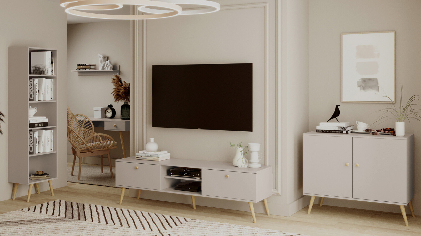 Sprawdź koniecznie pozostałe meble z naszej kolekcji! Nasz zestaw ociepli wnętrze twojego mieszkania, a optycznie stanie się ono bardziej przestrzenne.