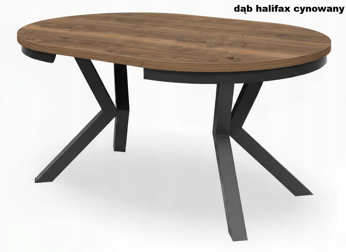 Stół Okrągły Rozkładany metalowe nogi typu X 100/150×100 cm Czarny + Dąb Halifax Cynowany