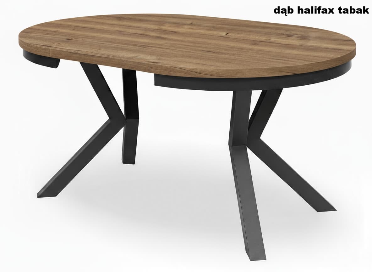Stół Okrągły Rozkładany metalowe nogi typu X 100/150×100 cm Czarny + Dąb Halifax Tabak