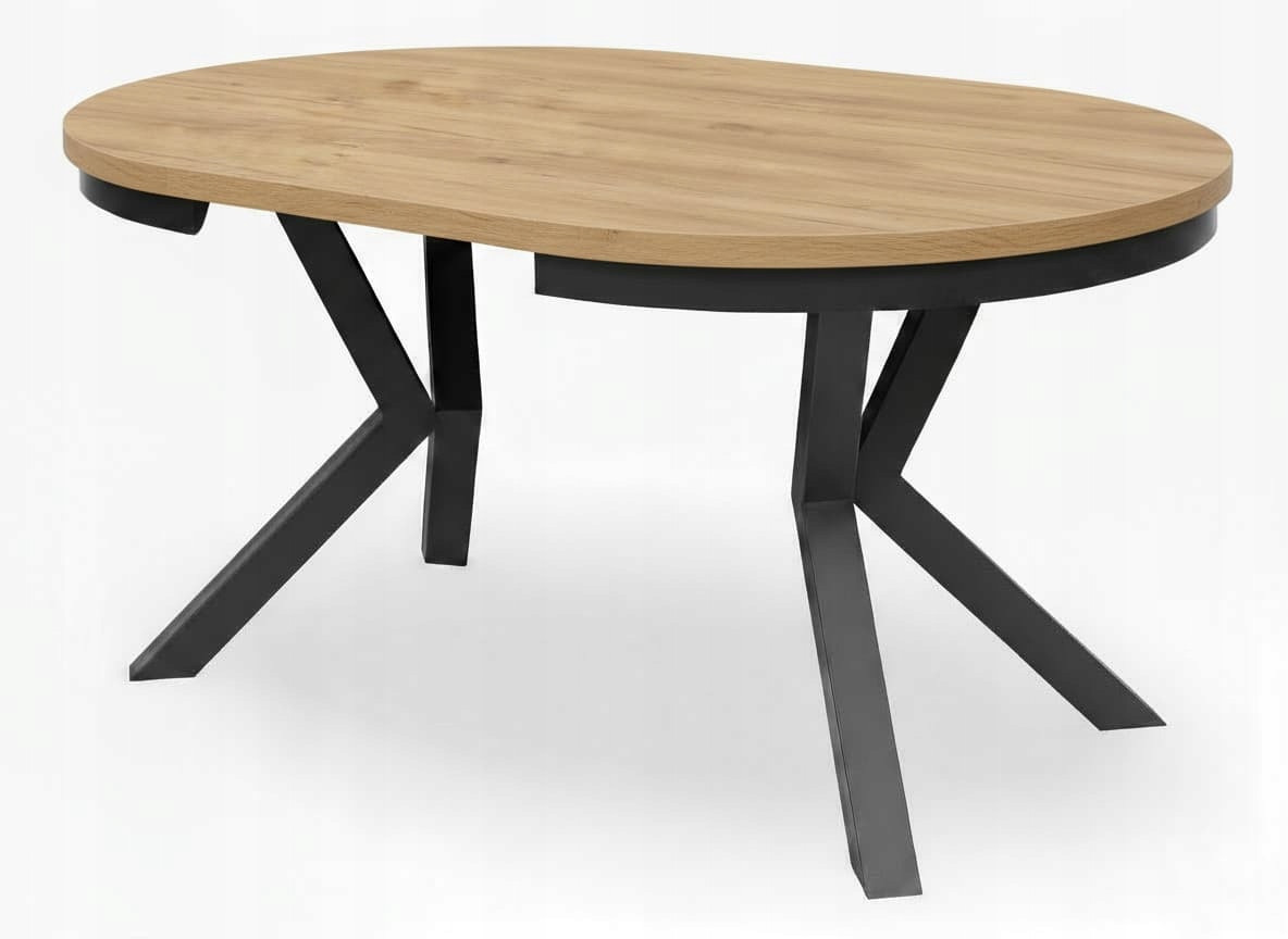 Stół loftowy rozkładany z metalowymi nogami typu X to połączenie solidności, funkcjonalności i ponadczasowego stylu industrialnego. Nowoczesny design i kontrastowe zestawienie czarnych metalowych nóg oraz stylowej metalowej obręczy z blatem w naturalnym odcieniu Dąb Kraft Złoty sprawia, że stół doskonale wpisuje się w aranżacje loftowe, skandynawskie i minimalistyczne.