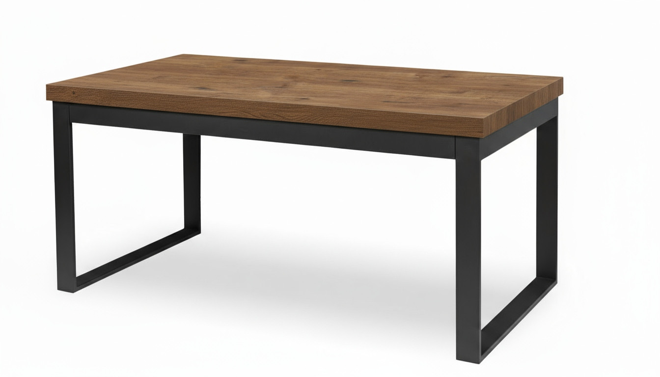 Blat wykonany jest z wysokiej jakości płyty laminowanej o grubości 50 mm (lub 36 mm na zamówienie), odpornej na zarysowania, wilgoć i wysokie temperatury. Zabezpieczony okleiną ABS, zachowuje swój elegancki wygląd przez wiele lat użytkowania. Metalowe nogi w kształcie litery U, malowane proszkowo, gwarantują wyjątkową stabilność i podkreślają industrialny charakter stołu.