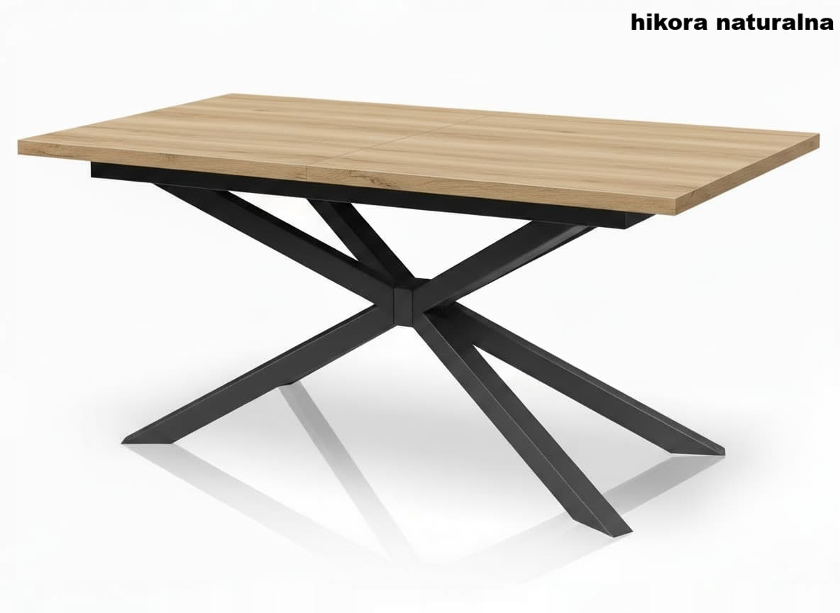 Blat wykonany jest z wysokiej jakości płyty laminowanej o grubości 36 mm, odpornej na zarysowania, wilgoć i wysokie temperatury. Zabezpieczony okleiną ABS, zachowuje swój elegancki wygląd przez wiele lat użytkowania. Metalowe nogi typu Pająk, malowane proszkowo, gwarantują wyjątkową stabilność i podkreślają industrialny charakter stołu.