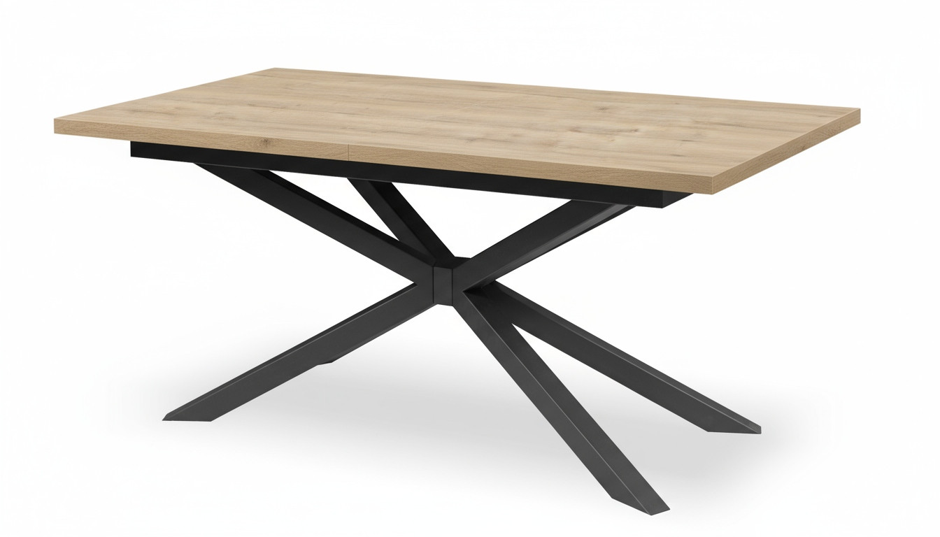 Stół loftowy rozkładany z metalowymi nogami typu Pająk to połączenie solidności, funkcjonalności i ponadczasowego stylu industrialnego. Nowoczesny design oparty na prostych liniach i kontrastowym zestawieniu czarnych metalowych nóg z blatem w naturalnym odcieniu Dąb Halifax Biały sprawia, że stół doskonale wpisuje się w aranżacje loftowe, skandynawskie i minimalistyczne.