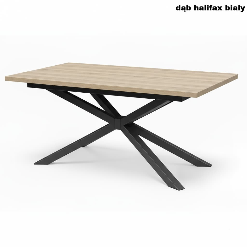 Stół loftowy rozkładany z metalowymi nogami typu Pająk to połączenie solidności, funkcjonalności i ponadczasowego stylu industrialnego. Nowoczesny design oparty na prostych liniach i kontrastowym zestawieniu czarnych metalowych nóg z blatem w naturalnym odcieniu Dąb Halifax Biały sprawia, że stół doskonale wpisuje się w aranżacje loftowe, skandynawskie i minimalistyczne.