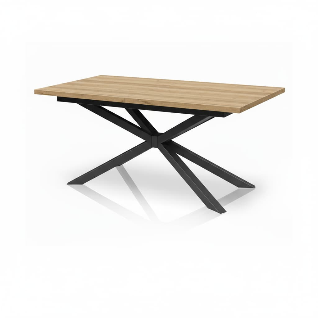 Stół loftowy rozkładany z metalowymi nogami typu Pająk to połączenie solidności, funkcjonalności i ponadczasowego stylu industrialnego. Nowoczesny design oparty na prostych liniach i kontrastowym zestawieniu czarnych metalowych nóg z blatem w naturalnym odcieniu Dąb Kraft Złoty sprawia, że stół doskonale wpisuje się w aranżacje loftowe, skandynawskie i minimalistyczne.