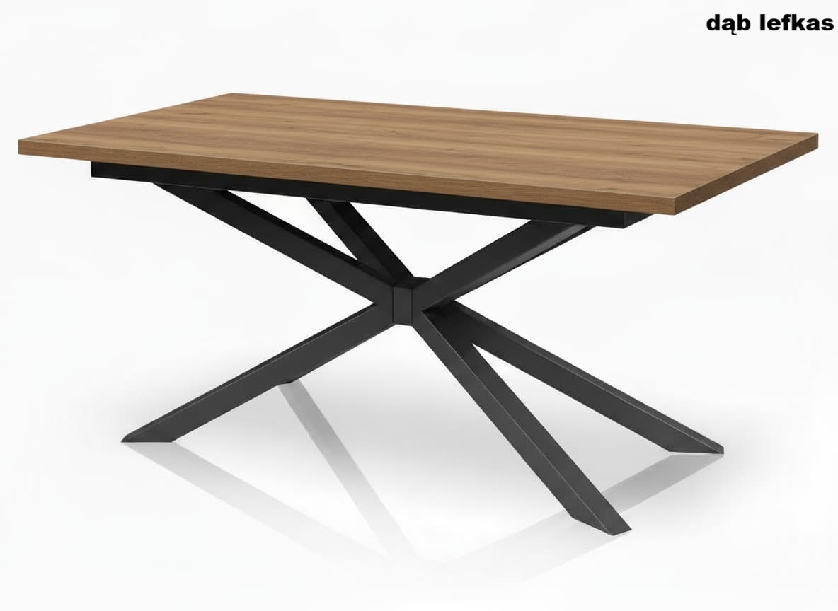 Stół loftowy do jadalni metal pająk 200/250x100cm Czarny + Dąb Lefkas