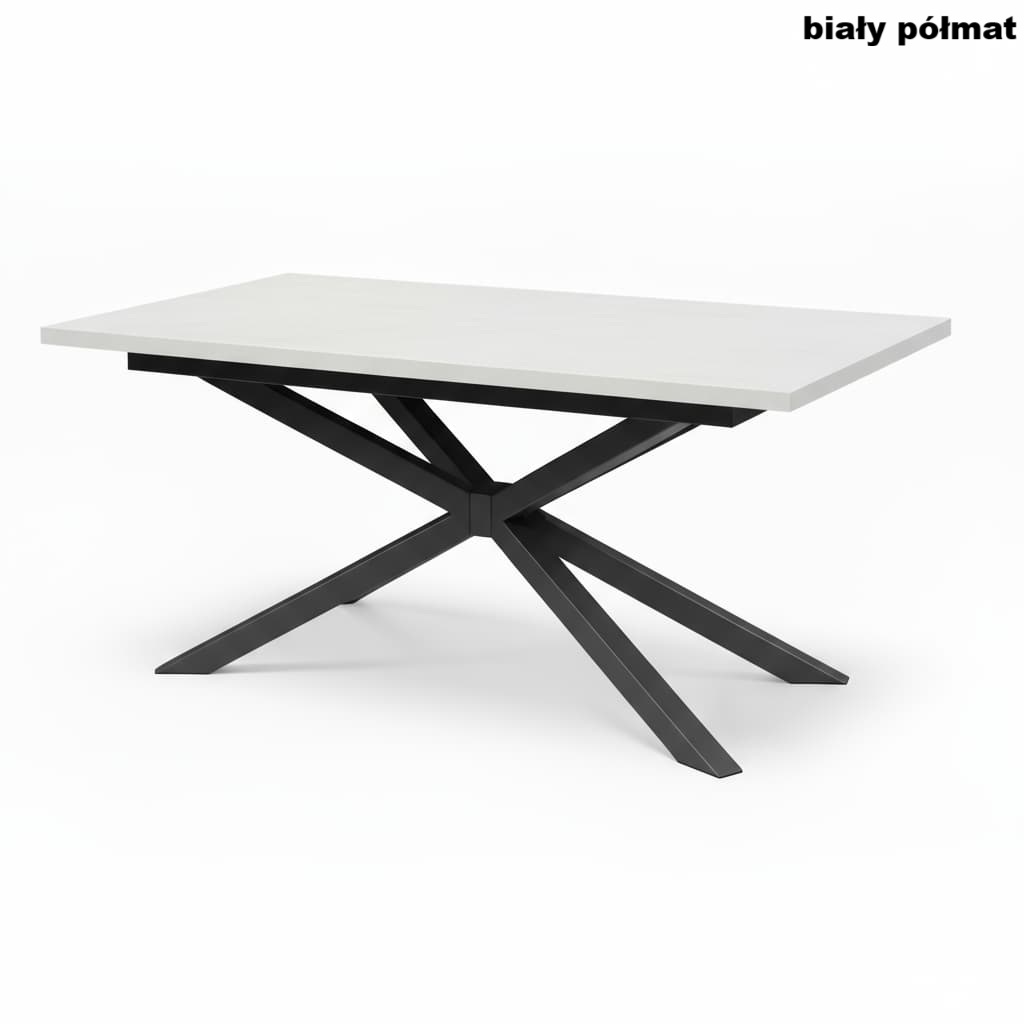 Blat wykonany jest z wysokiej jakości płyty laminowanej o grubości 36 mm, odpornej na zarysowania, wilgoć i wysokie temperatury. Zabezpieczony okleiną ABS, zachowuje swój elegancki wygląd przez wiele lat użytkowania. Metalowe nogi typu Pająk, malowane proszkowo, gwarantują wyjątkową stabilność i podkreślają industrialny charakter stołu.