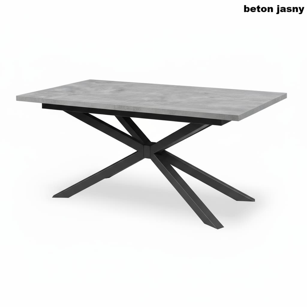 Stół loftowy rozkładany z metalowymi nogami typu Pająk to połączenie solidności, funkcjonalności i ponadczasowego stylu industrialnego. Nowoczesny design oparty na prostych liniach i kontrastowym zestawieniu czarnych metalowych nóg z blatem w naturalnym odcieniu Beton Jasny sprawia, że stół doskonale wpisuje się w aranżacje loftowe, skandynawskie i minimalistyczne.