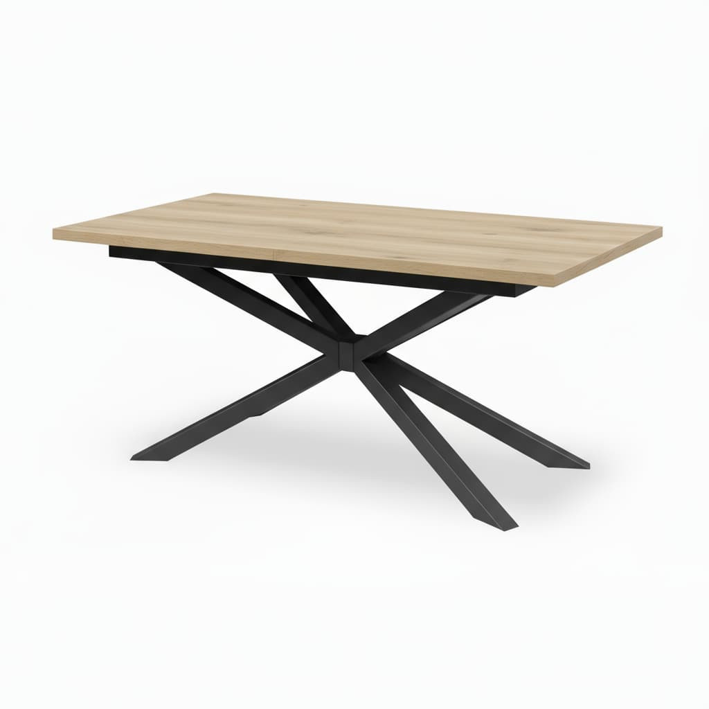 Stół loftowy rozkładany z metalowymi nogami typu Pająk to połączenie solidności, funkcjonalności i ponadczasowego stylu industrialnego. Nowoczesny design oparty na prostych liniach i kontrastowym zestawieniu czarnych metalowych nóg z blatem w naturalnym odcieniu Dąb Artisan sprawia, że stół doskonale wpisuje się w aranżacje loftowe, skandynawskie i minimalistyczne.