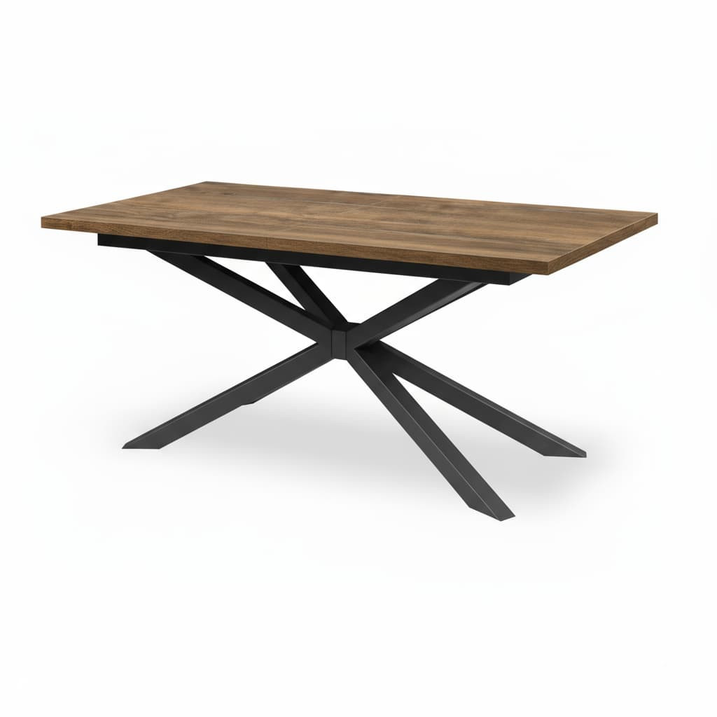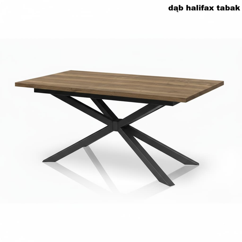 Stół loftowy rozkładany z metalowymi nogami typu Pająk to połączenie solidności, funkcjonalności i ponadczasowego stylu industrialnego. Nowoczesny design oparty na prostych liniach i kontrastowym zestawieniu czarnych metalowych nóg z blatem w naturalnym odcieniu Dąb Halifax Cynowany sprawia, że stół doskonale wpisuje się w aranżacje loftowe, skandynawskie i minimalistyczne.