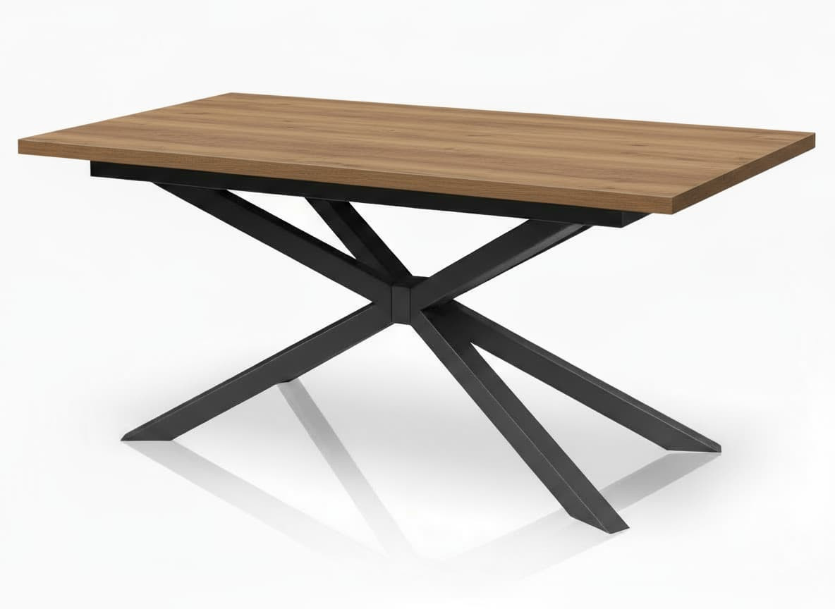Stół loftowy rozkładany z metalowymi nogami typu Pająk to połączenie solidności, funkcjonalności i ponadczasowego stylu industrialnego. Nowoczesny design oparty na prostych liniach i kontrastowym zestawieniu czarnych metalowych nóg z blatem w naturalnym odcieniu Dąb Lefkas sprawia, że stół doskonale wpisuje się w aranżacje loftowe, skandynawskie i minimalistyczne.