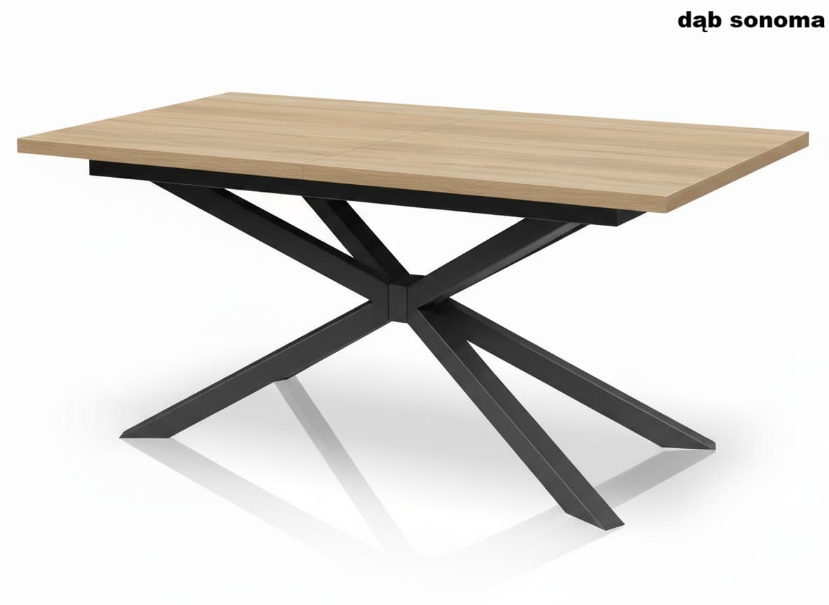Stół loftowy rozkładany z metalowymi nogami typu Pająk to połączenie solidności, funkcjonalności i ponadczasowego stylu industrialnego. Nowoczesny design oparty na prostych liniach i kontrastowym zestawieniu czarnych metalowych nóg z blatem w naturalnym odcieniu Dąb Halifax Cynowany sprawia, że stół doskonale wpisuje się w aranżacje loftowe, skandynawskie i minimalistyczne.