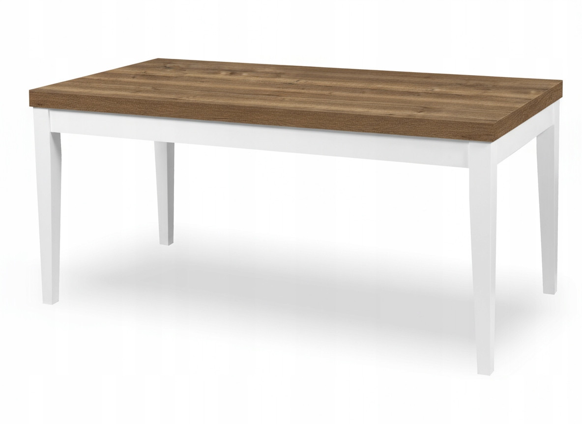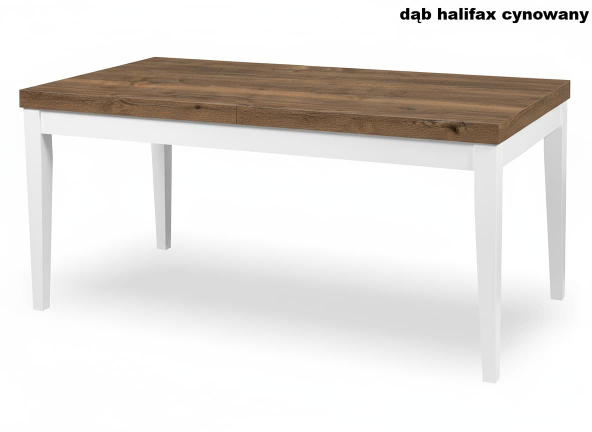 Stół Prostokątny Rozkładany Drewniane Nogi 120/160x70cm cm Biały + Dąb Halifax Tabak