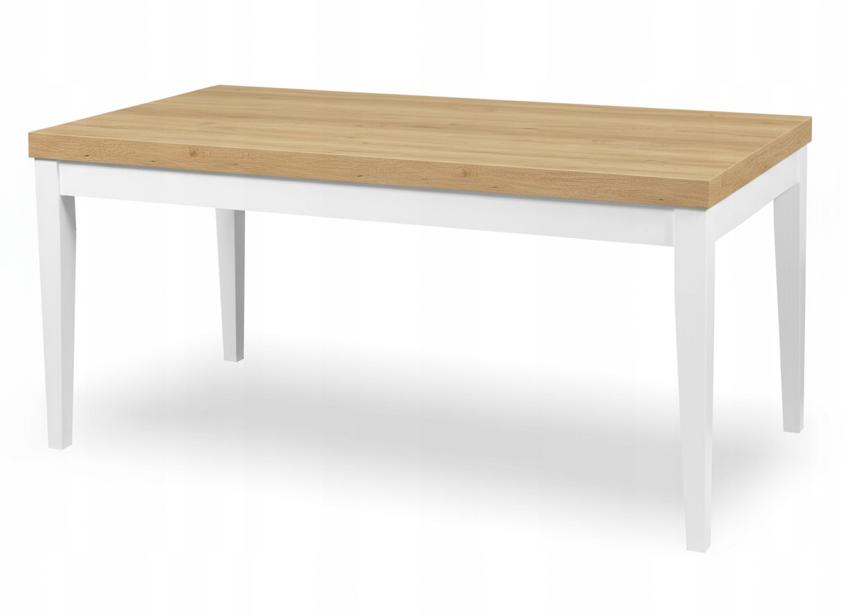 Stół Prostokątny Rozkładany Drewniane Nogi 170/210x90cm cm Biały + Dąb Kraft Złoty