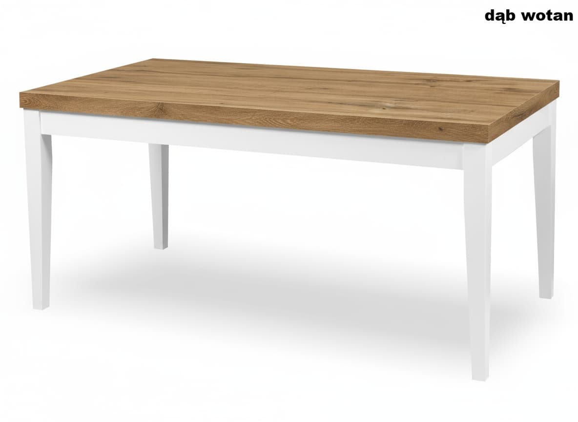 Stół loftowy rozkładany z drewnianymi nogami to połączenie solidności, funkcjonalności i ponadczasowego stylu industrialnego. Nowoczesny design oparty na prostych liniach i kontrastowym zestawieniu białych drewnianych nóg z blatem w kolorze Dąb Wotan sprawia, że stół doskonale wpisuje się w aranżacje loftowe, skandynawskie i minimalistyczne.