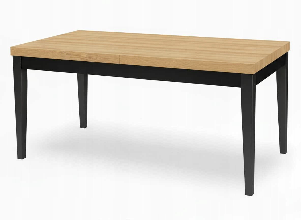 Stół loftowy rozkładany z drewnianymi nogami to połączenie solidności, funkcjonalności i ponadczasowego stylu industrialnego. Nowoczesny design oparty na prostych liniach i kontrastowym zestawieniu czarnych drewnianych nóg z blatem w kolorze Hikora Naturalna sprawia, że stół doskonale wpisuje się w aranżacje loftowe, skandynawskie i minimalistyczne.