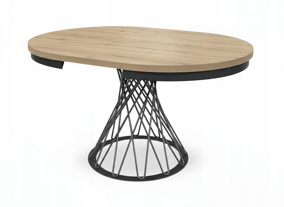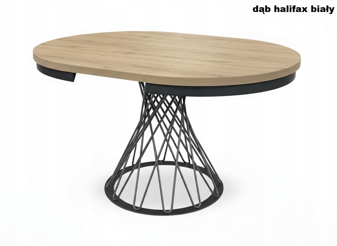 Stół loftowy rozkładany z metalowymi nogami plecionymi to połączenie solidności, funkcjonalności i ponadczasowego stylu industrialnego. Nowoczesny design i kontrastowe zestawienie czarnych metalowych nóg plecionych oraz stylowej metalowej obręczy z blatem w naturalnym odcieniu Dąb Halifax Biały sprawia, że stół doskonale wpisuje się w aranżacje loftowe, skandynawskie i minimalistyczne.