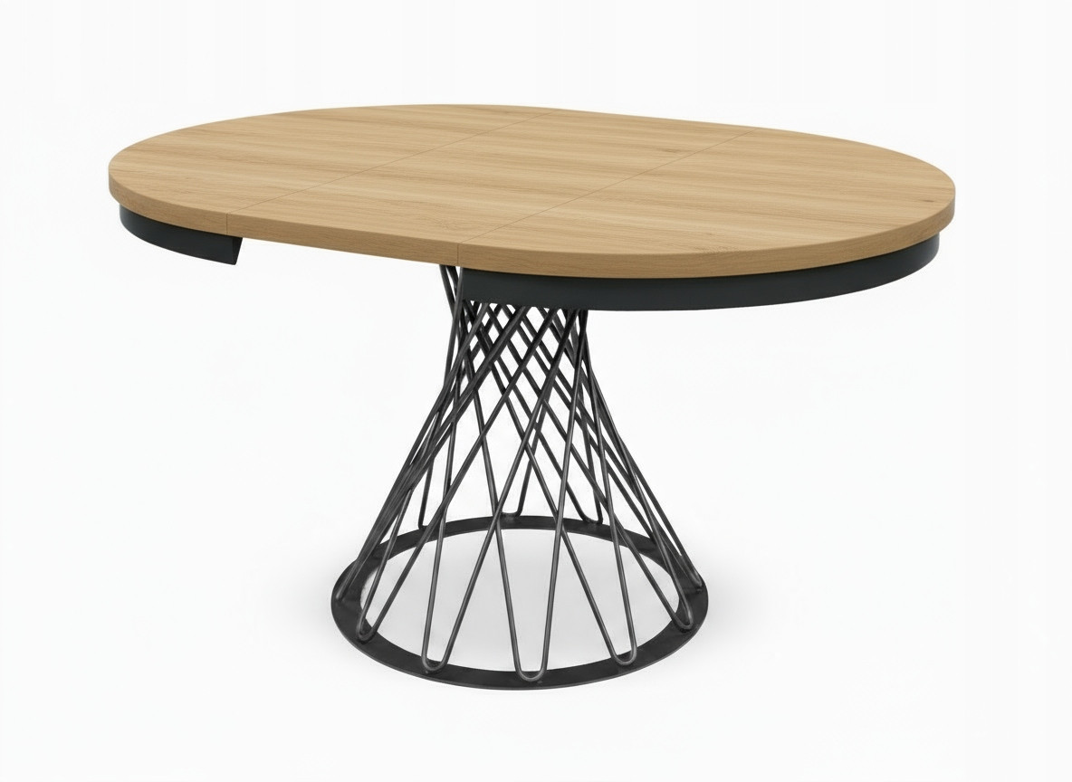 Stół loftowy rozkładany z metalowymi nogami plecionymi to połączenie solidności, funkcjonalności i ponadczasowego stylu industrialnego. Nowoczesny design i kontrastowe zestawienie czarnych metalowych nóg plecionych oraz stylowej metalowej obręczy z blatem w naturalnym odcieniu Dąb Sonoma sprawia, że stół doskonale wpisuje się w aranżacje loftowe, skandynawskie i minimalistyczne.