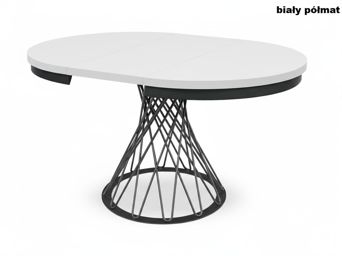 Blat wykonany jest z wysokiej jakości płyty laminowanej o grubości 36 mm, odpornej na zarysowania, wilgoć i wysokie temperatury. Zabezpieczony okleiną ABS, zachowuje swój elegancki wygląd przez wiele lat użytkowania. Metalowe nogi plecione oraz obręcz maskująca, malowane proszkowo, gwarantują wyjątkową stabilność i podkreślają industrialny charakter stołu.