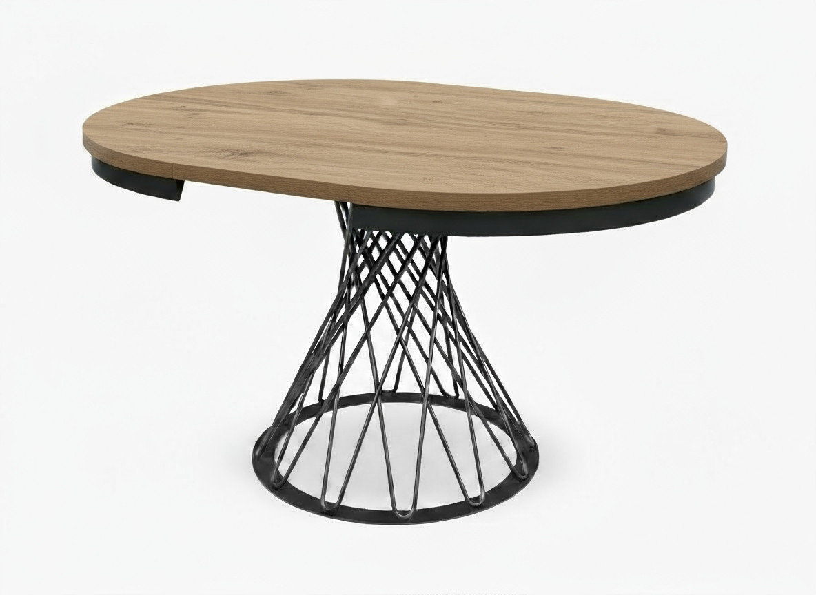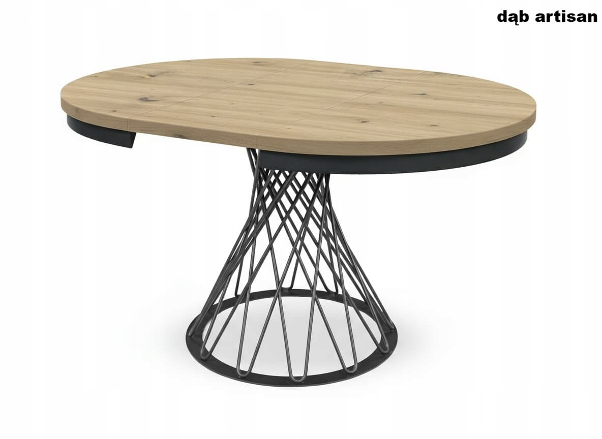 Stół loftowy rozkładany z metalowymi nogami plecionymi to połączenie solidności, funkcjonalności i ponadczasowego stylu industrialnego. Nowoczesny design i kontrastowe zestawienie czarnych metalowych nóg plecionych oraz stylowej metalowej obręczy z blatem w naturalnym odcieniu Dąb Wotan sprawia, że stół doskonale wpisuje się w aranżacje loftowe, skandynawskie i minimalistyczne.