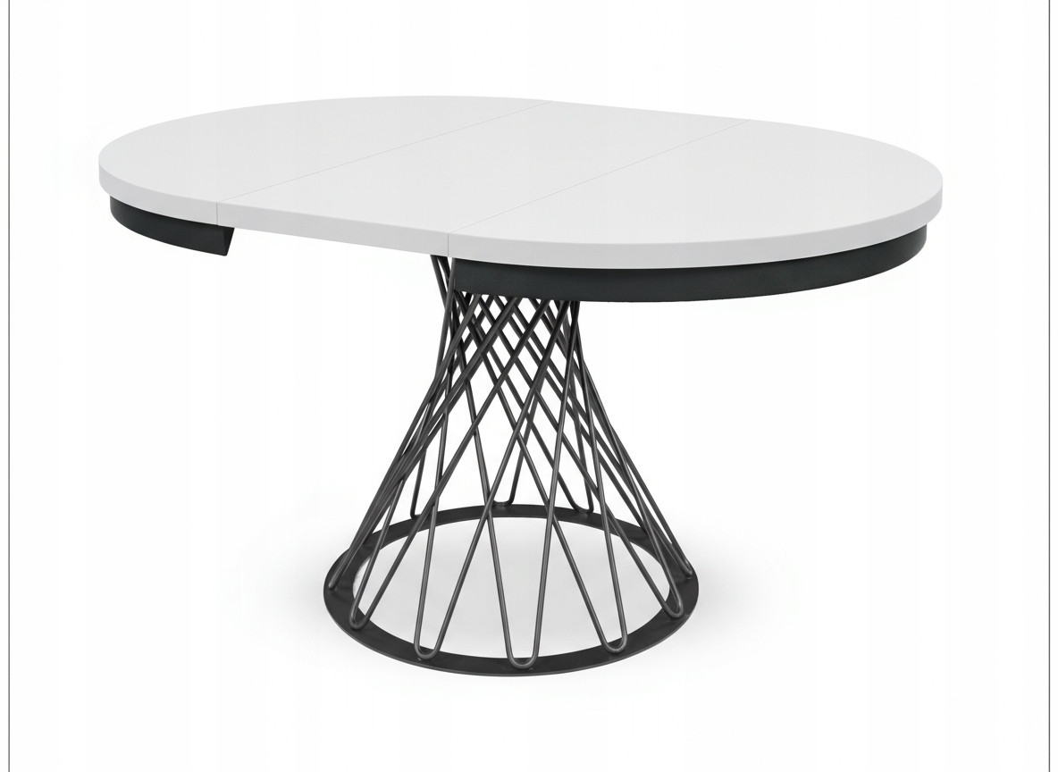 Stół loftowy rozkładany z metalowymi nogami plecionymi to połączenie solidności, funkcjonalności i ponadczasowego stylu industrialnego. Nowoczesny design i kontrastowe zestawienie czarnych metalowych nóg plecionych oraz stylowej metalowej obręczy z blatem w naturalnym odcieniu Biały Półmat sprawia, że stół doskonale wpisuje się w aranżacje loftowe, skandynawskie i minimalistyczne.
