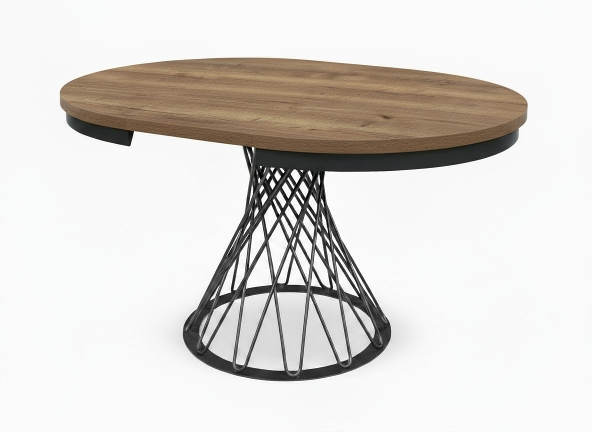 Stół loftowy rozkładany z metalowymi nogami plecionymi to połączenie solidności, funkcjonalności i ponadczasowego stylu industrialnego. Nowoczesny design i kontrastowe zestawienie czarnych metalowych nóg plecionych oraz stylowej metalowej obręczy z blatem w naturalnym odcieniu Dąb Halifax Tabak sprawia, że stół doskonale wpisuje się w aranżacje loftowe, skandynawskie i minimalistyczne.