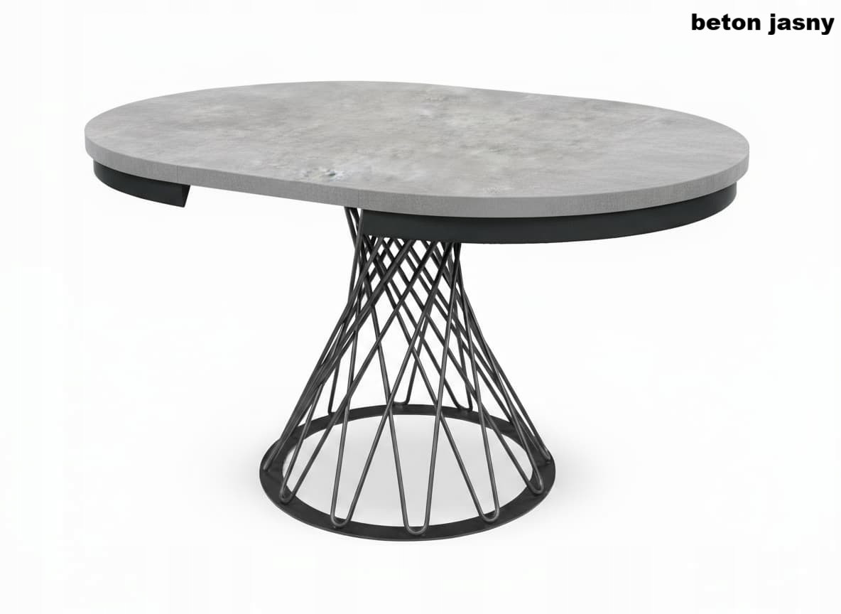Blat wykonany jest z wysokiej jakości płyty laminowanej o grubości 36 mm, odpornej na zarysowania, wilgoć i wysokie temperatury. Zabezpieczony okleiną ABS, zachowuje swój elegancki wygląd przez wiele lat użytkowania. Metalowe nogi plecione oraz obręcz maskująca, malowane proszkowo, gwarantują wyjątkową stabilność i podkreślają industrialny charakter stołu.