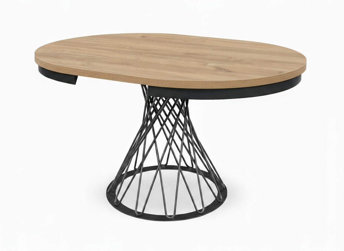 Stół loftowy rozkładany z metalowymi nogami plecionymi to połączenie solidności, funkcjonalności i ponadczasowego stylu industrialnego. Nowoczesny design i kontrastowe zestawienie czarnych metalowych nóg plecionych oraz stylowej metalowej obręczy z blatem w naturalnym odcieniu Dąb Lancelot sprawia, że stół doskonale wpisuje się w aranżacje loftowe, skandynawskie i minimalistyczne.