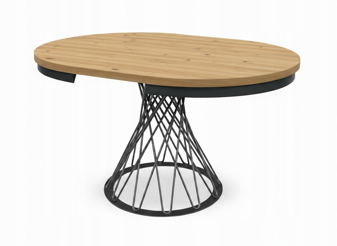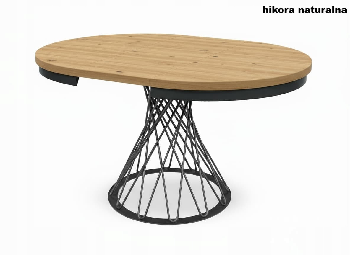 Stół loftowy rozkładany z metalowymi nogami plecionymi to połączenie solidności, funkcjonalności i ponadczasowego stylu industrialnego. Nowoczesny design i kontrastowe zestawienie czarnych metalowych nóg plecionych oraz stylowej metalowej obręczy z blatem w naturalnym odcieniu Hikora Naturalna sprawia, że stół doskonale wpisuje się w aranżacje loftowe, skandynawskie i minimalistyczne.