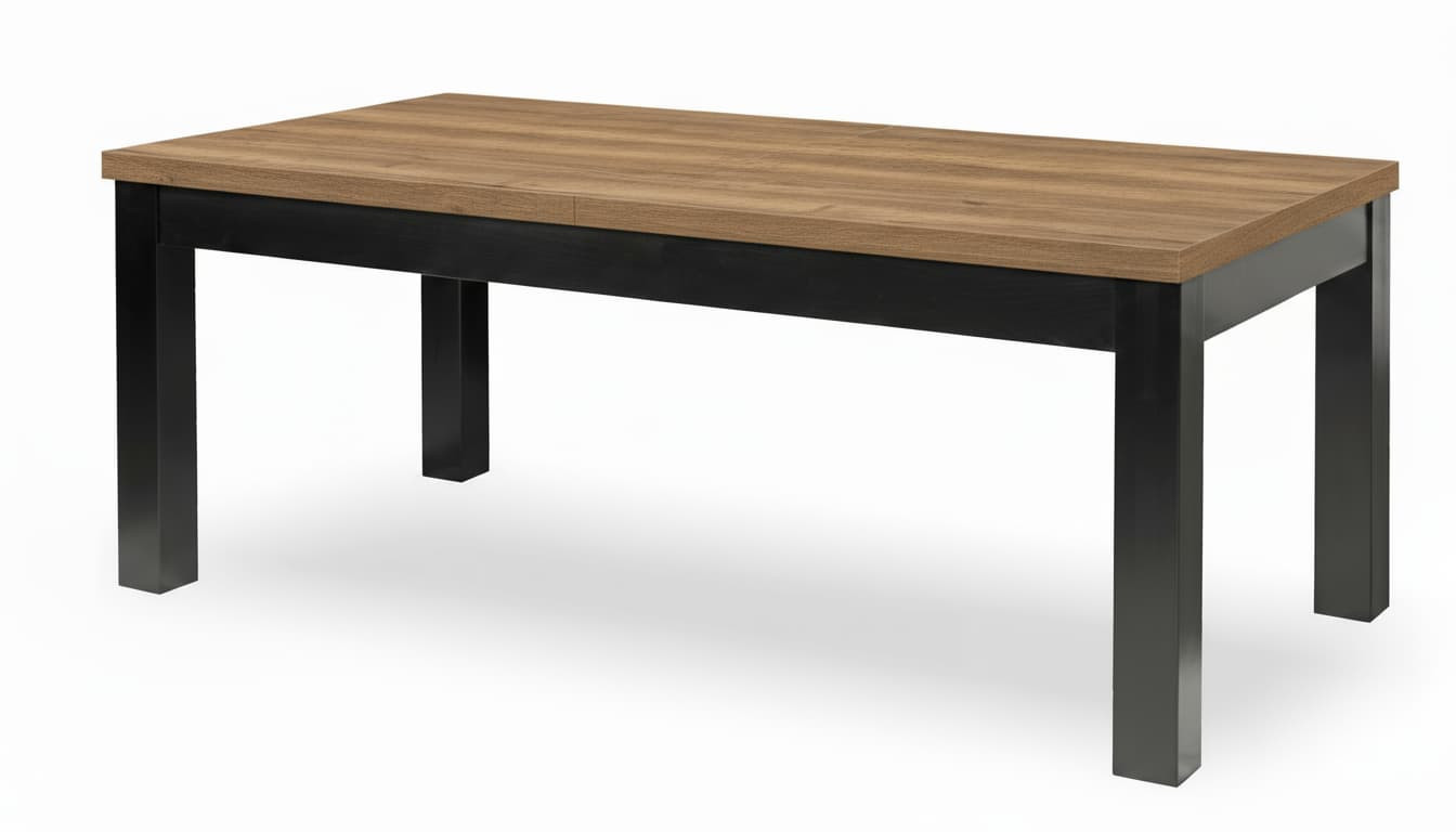 Stół loftowy rozkładany z drewnianymi nogami to połączenie solidności, funkcjonalności i ponadczasowego stylu industrialnego. Nowoczesny design oparty na prostych liniach i kontrastowym zestawieniu czarnych drewnianych nóg z blatem w kolorze Dąb Halifax Tabak sprawia, że stół doskonale wpisuje się w aranżacje loftowe, skandynawskie i minimalistyczne.