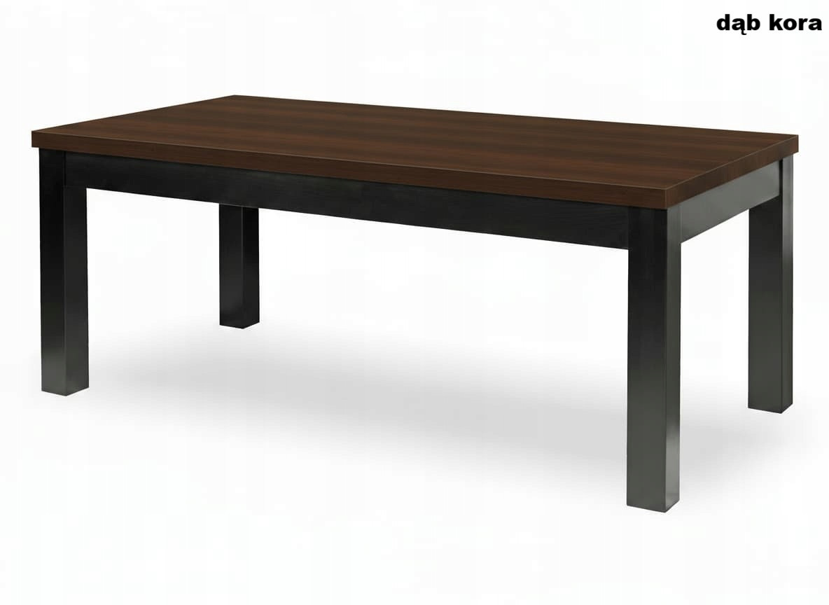 Blat wykonany jest z wysokiej jakości płyty laminowanej o grubości 50 mm, odpornej na zarysowania, wilgoć i wysokie temperatury. Zabezpieczony okleiną ABS, zachowuje swój elegancki wygląd przez wiele lat użytkowania. Nogi z litego drewna bukowego, malowane ekologicznymi bejcami, gwarantują wyjątkową stabilność i podkreślają loftowy charakter stołu.