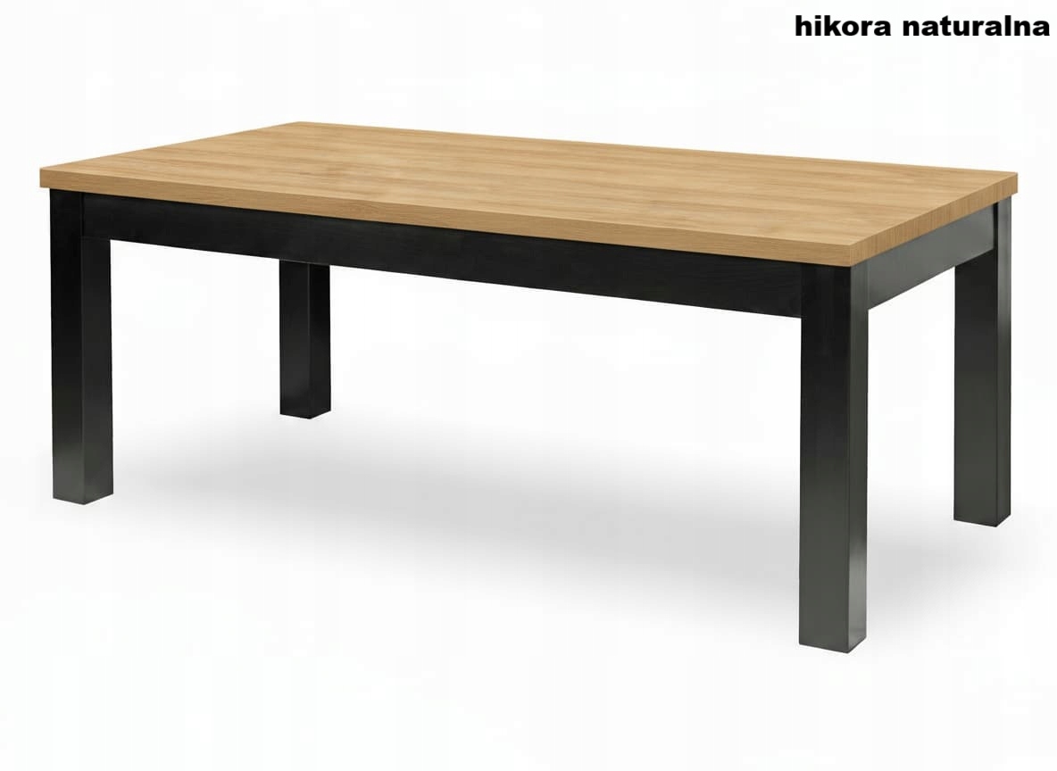 Stół loftowy rozkładany z drewnianymi nogami to połączenie solidności, funkcjonalności i ponadczasowego stylu industrialnego. Nowoczesny design oparty na prostych liniach i kontrastowym zestawieniu czarnych drewnianych nóg z blatem w kolorze Hikora Naturalna sprawia, że stół doskonale wpisuje się w aranżacje loftowe, skandynawskie i minimalistyczne.