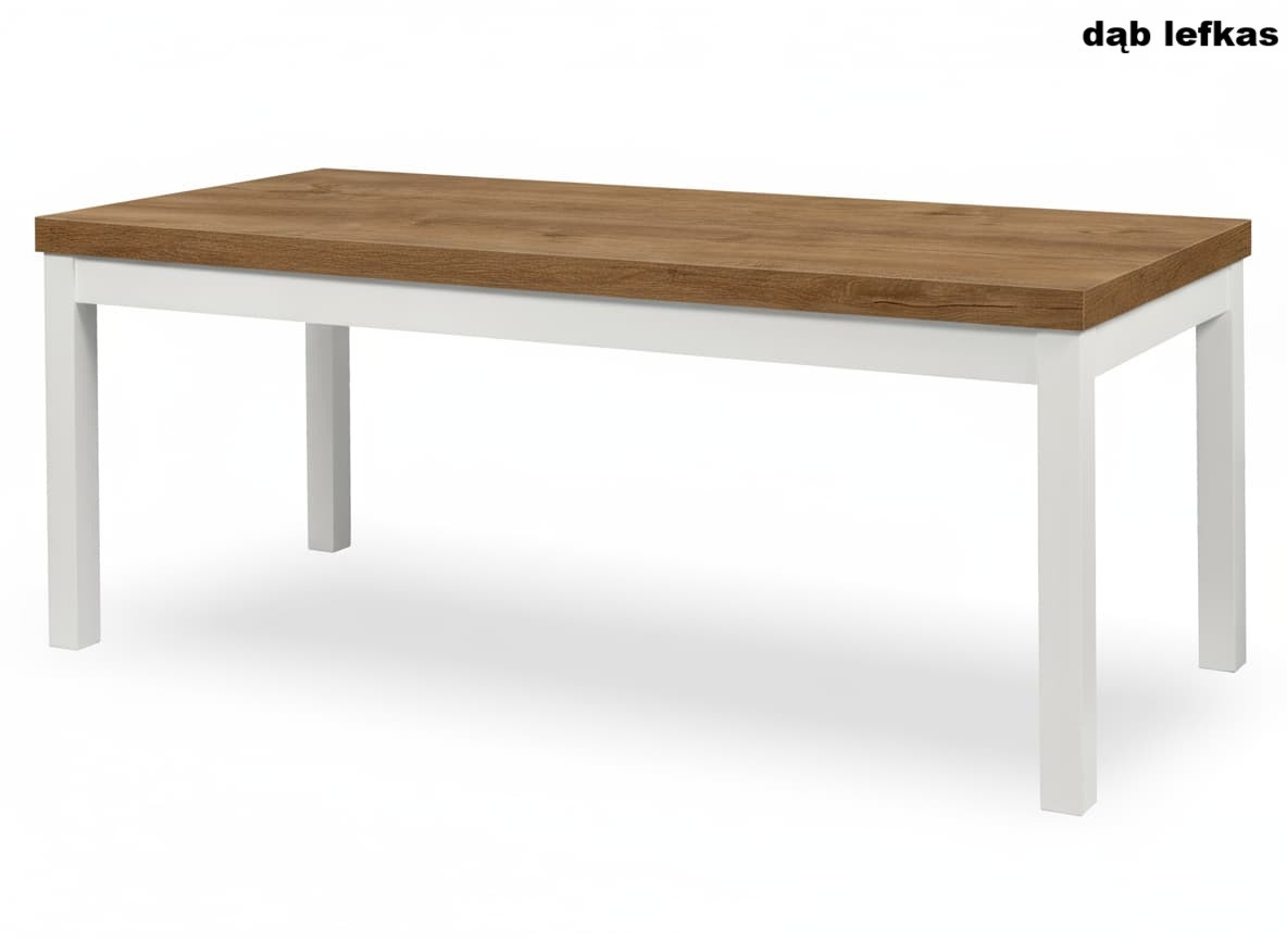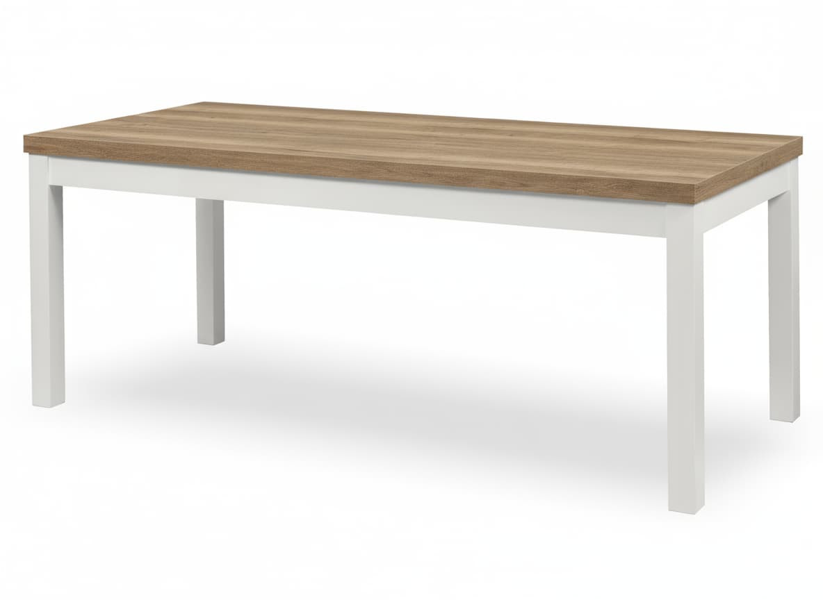 Blat wykonany jest z wysokiej jakości płyty laminowanej o grubości 36 mm, odpornej na zarysowania, wilgoć i wysokie temperatury. Zabezpieczony okleiną ABS, zachowuje swój elegancki wygląd przez wiele lat użytkowania. Nogi z litego drewna bukowego, malowane ekologicznymi bejcami, gwarantują wyjątkową stabilność i podkreślają loftowy charakter stołu.