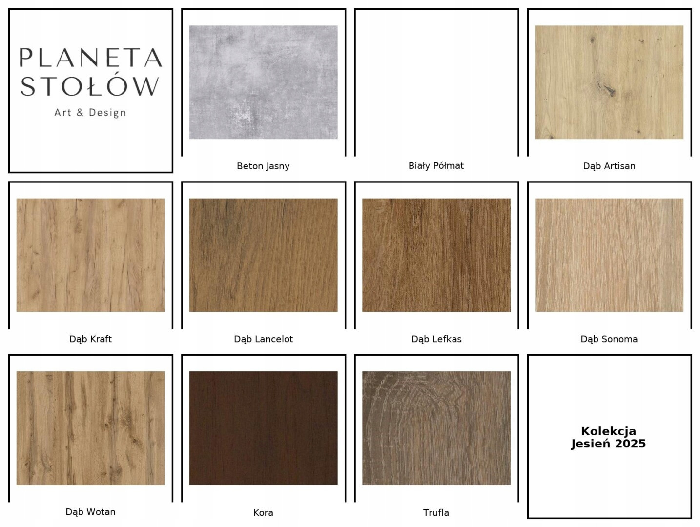 Dostępne kolory laminatów: