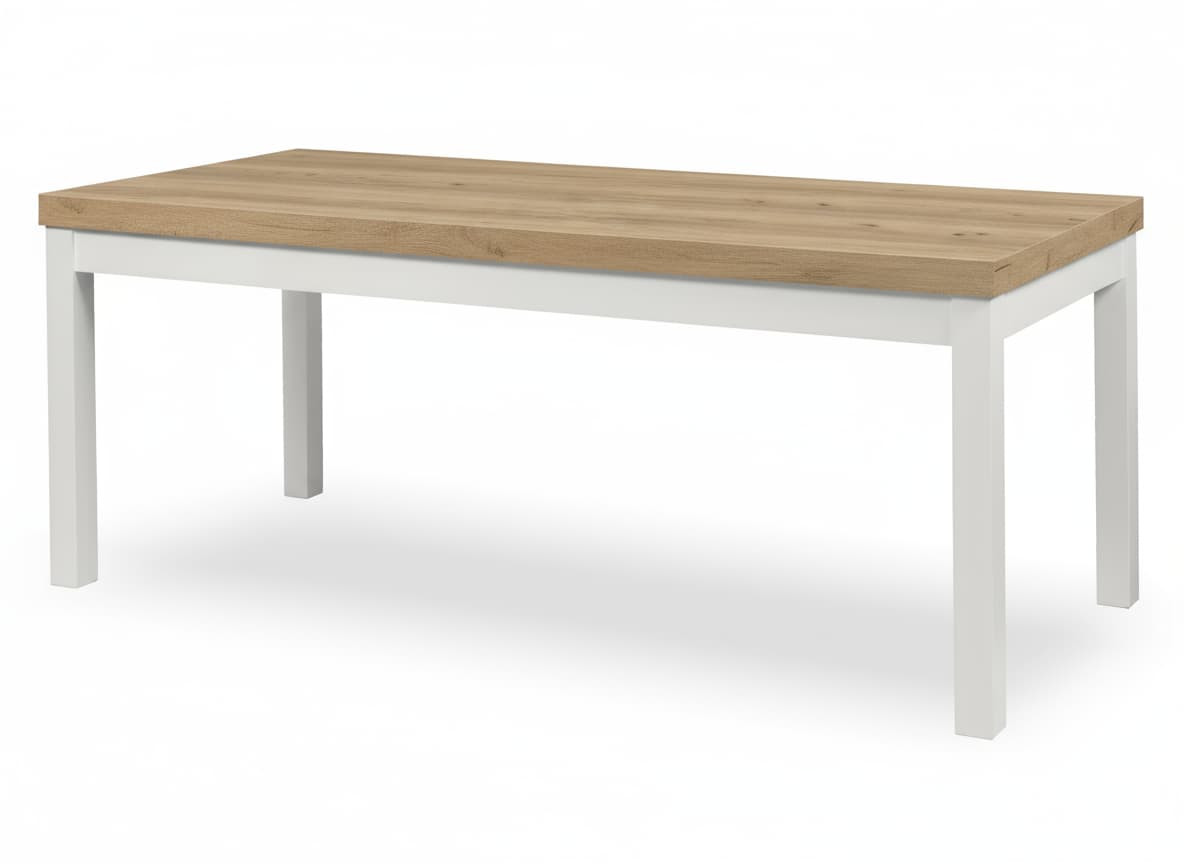 Stół loftowy rozkładany z drewnianymi nogami to połączenie solidności, funkcjonalności i ponadczasowego stylu industrialnego. Nowoczesny design oparty na prostych liniach i kontrastowym zestawieniu białych drewnianych nóg z blatem w kolorze Dąb Kraft Złoty sprawia, że stół doskonale wpisuje się w aranżacje loftowe, skandynawskie i minimalistyczne.