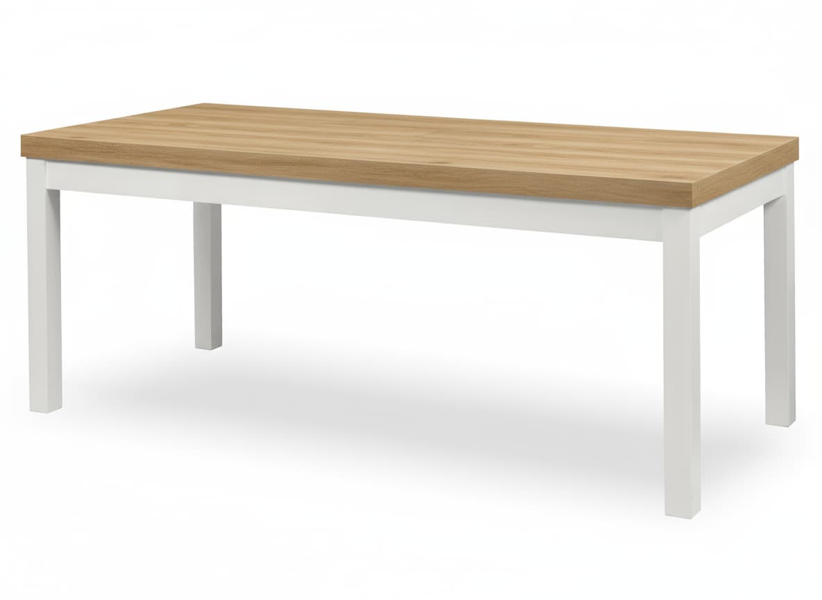 Stół loftowy rozkładany z drewnianymi nogami to połączenie solidności, funkcjonalności i ponadczasowego stylu industrialnego. Nowoczesny design oparty na prostych liniach i kontrastowym zestawieniu białych drewnianych nóg z blatem w kolorze Hikora Naturalna sprawia, że stół doskonale wpisuje się w aranżacje loftowe, skandynawskie i minimalistyczne.