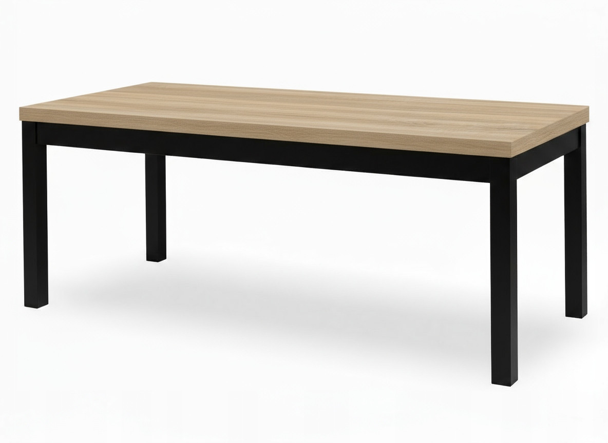 Blat wykonany jest z wysokiej jakości płyty laminowanej o grubości 50 mm (lub 36 mm na zamówienie), odpornej na zarysowania, wilgoć i wysokie temperatury. Zabezpieczony okleiną ABS, zachowuje swój elegancki wygląd przez wiele lat użytkowania. Nogi z litego drewna bukowego, malowane ekologicznymi bejcami, gwarantują wyjątkową stabilność i podkreślają loftowy charakter stołu.