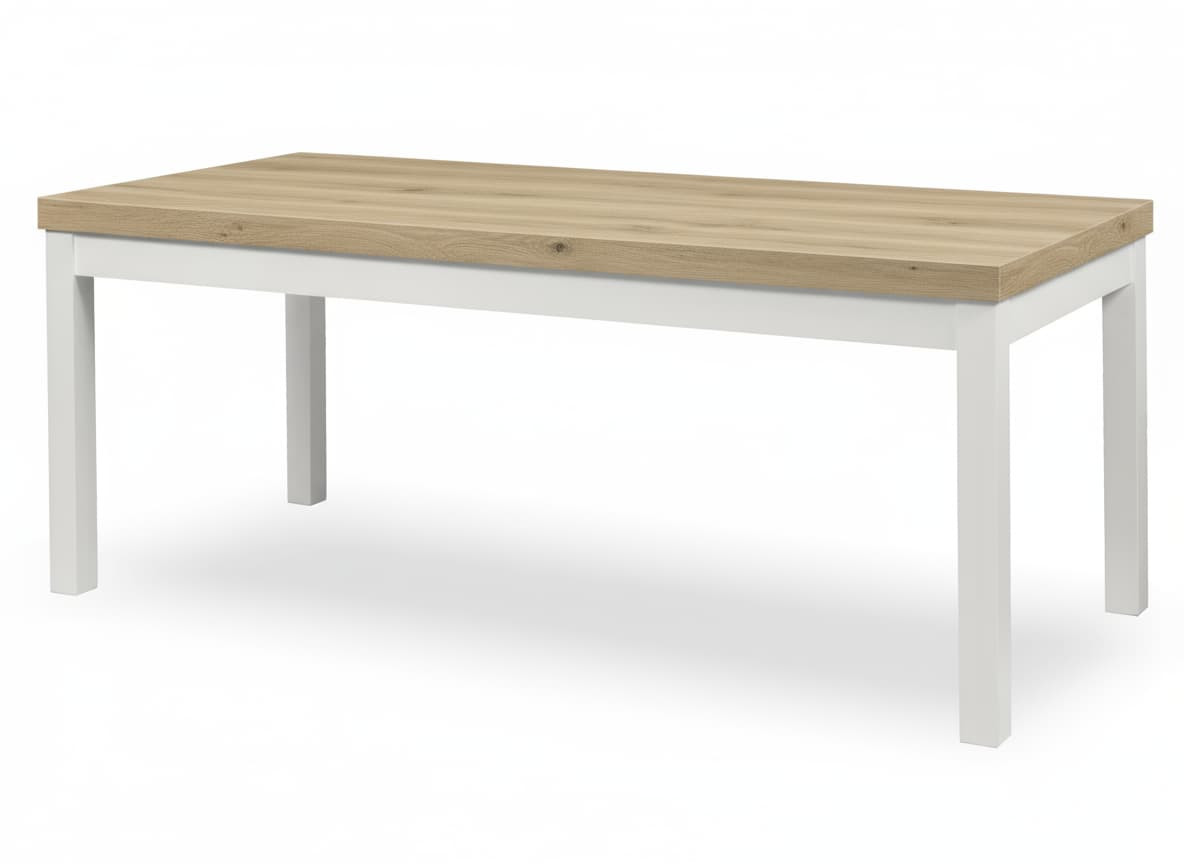 Stół loftowy rozkładany z drewnianymi nogami to połączenie solidności, funkcjonalności i ponadczasowego stylu industrialnego. Nowoczesny design oparty na prostych liniach i kontrastowym zestawieniu białych drewnianych nóg z blatem w kolorze Dąb Artisan sprawia, że stół doskonale wpisuje się w aranżacje loftowe, skandynawskie i minimalistyczne.