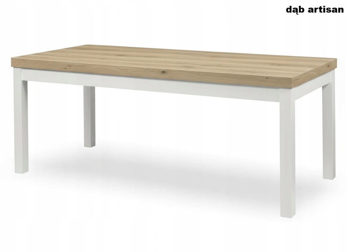 Stół loftowy rozkładany z drewnianymi nogami to połączenie solidności, funkcjonalności i ponadczasowego stylu industrialnego. Nowoczesny design oparty na prostych liniach i kontrastowym zestawieniu białych drewnianych nóg z blatem w kolorze Dąb Artisan sprawia, że stół doskonale wpisuje się w aranżacje loftowe, skandynawskie i minimalistyczne.